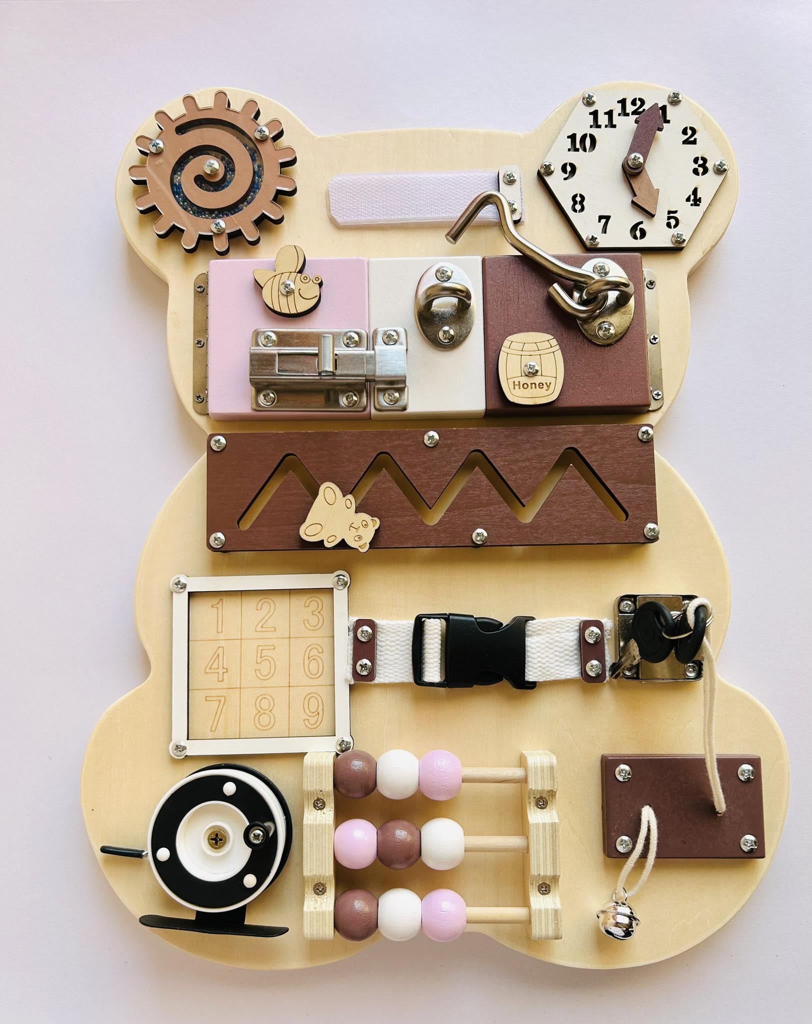 ¡Descubre la diversión y el aprendizaje sin límites este Busy Board! Diseñado para estimular la curiosidad y la destreza de tu pequeño, este tablero interactivo ofrece una amplia gama de actividades que desafiarán y entretendrán a tu hijo durante horas.